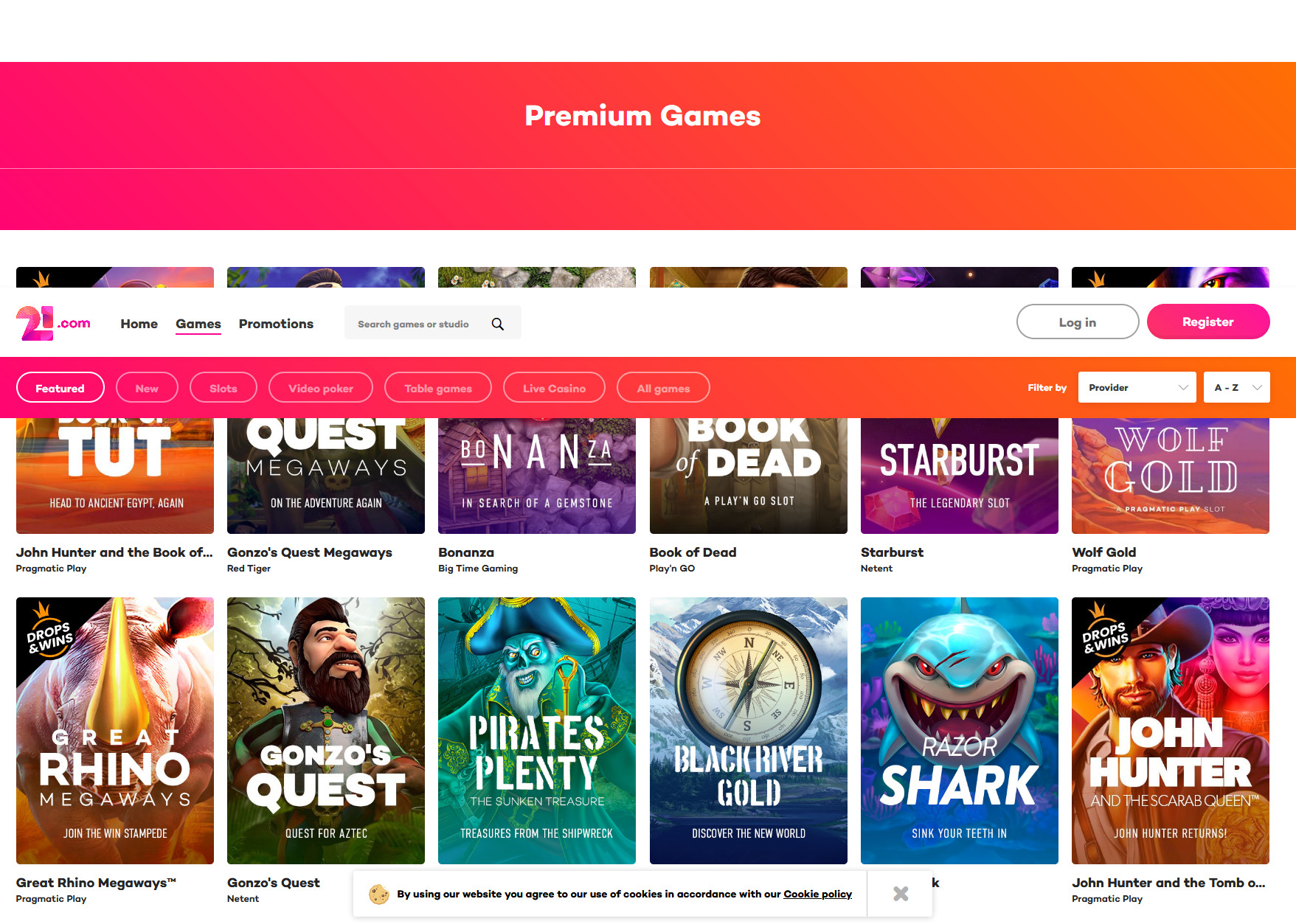 - Excelente y completa selección de tragamonedas